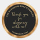 Ein Dankeschön für das Shoppen mit unserem Aufkleber mit einer gewebten Goldfolie und schwarzem Hintergrund.