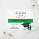 Schwarze und grüne Graduierungskappe und Tassel Save The Date