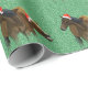 Fügen Sie Ihren Weihnachtsgeschenke eine Touch Glanz mit diesen Packpapier-Blättern mit lustigen amerikanischen Pferden, die Weihnachts-Weihnachtsmannmütze tragen, mit grünem Glitzer als Hintergrund.