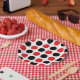 Schwarze und rote Polka-Punkte Pappteller