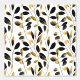 Dies ist ein nahtloser Aquarelldruck auf weißem Hintergrund. Das Design besteht aus schwarz-bräunlichen Blattformen, die auf einem großen Feld eine anmutige fließende Textur und Muster bilden.