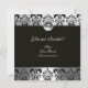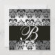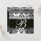 SCHWARZE UND WEISSE DAMASK-MONOGRAMM Silbermondste Einladung