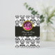 SCHWARZE UND WEISSE DAMASK Pink-Amethyst-Monogramm Ankündigungspostkarte
