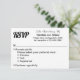 Sammeln Sie die Antworten Ihrer Gäste mit dieser schwarz-weißen, schlichten Text-RSVP, einer klassischen und zeitlosen Farbe, die verschiedene Hochzeitsthemen ergänzen kann. Ein Design für Paare, die schlichten Text ohne Elemente im Hintergrund bevorzugen, um die Lesbarkeit zu erleichtern. Der schwarze Text, der auf dem weißen Hintergrund kontrastiert, verbessert auch die Lesbarkeit. Die verwendeten Schriftarten sind Kalligrafie, Script und Sans Serif. Kalligrafie- und Script-Schriftarten werden verwendet, um den Stil zu verbessern, während die Sans-Serif-Schriftart verwendet wird, um die Lesbarkeit und Klarheit zu verbessern. Passen Sie es an, indem Sie die Namen der Braut und des Bräutigams, RSVP-Details und Essensauswahl eingeben. Sie können auch den Inhalt oder die Formulierungen im Design-Tool ändern, einschließlich Schriftstil, Schriftfarbe und Hintergrundfarbe. Bitte überprüfen Sie das Aussehen der Vorder- und Rückseite nach der Texteingabe. Wenn das Aussehen Ihnen gefällt, können Sie jetzt Ihre Bestellung aufgeben. Wenn Sie die Texte neu skalieren oder neu positionieren müssen, passen Sie dies bitte