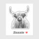 Schwarz-Weiß-Aufkleber für Hochlandkuh. Schottlands tierisches Foto.