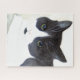 Dieses niedliche Puzzle wird von einem Aquarellbild einer schwarz-weiß getuxedo kitty cat geschmückt!