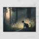 Schwarze und weiße Piebaldkat im Wald Postkarte