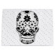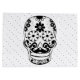 Niedlicher Zuckerschädel in Schwarz-Weiß mit niedlichem Schnurrbart und schwarzen Polka-Punkten.