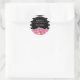 Schwarze und weiße Streifen mit rosa Blume Runder Aufkleber