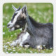 Schwarze und weiße Ziege auf Gras liegen Quadratischer Aufkleber