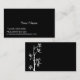 Schlichte schwarze Geschäftskarte mit Bambusgemustertem auf der Rückseite ausführlich weiße Silhouette- und Namen- und Kontakt über die Front. Einfach dennoch elegent.