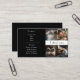 Mit unserer eleganten schwarzen Visitenkarte, die das Wesen Ihrer feline-freundlichen Dienstleistungen erfassen soll, können Sie das berufliche Image Ihrer Gastfamilie aufwerten. Mit vier individuell gestaltbaren Fotos auf der Vorderseite präsentiert diese Karte den einzigartigen Charme und die einzigartige Umgebung Ihrer Gaststätte. Fügen Sie den Namen Ihrer Katterie, die Kontaktinformationen und eine Liste der personalisierten Dienste hinzu, um einen bleibenden Eindruck zu hinterlassen. Diese Visitenkarte ist perfekt für Katzenbesitzer, die eine verlässliche und liebevolle Betreuung ihrer Haustiere suchen. Sie sorgt für Eleganz und Klarheit.