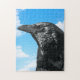 Das Rätsel der Schwarzen. Das totem Vogeltier vieler. Schwarze Krähe vor blauem wolkigen Himmelshintergrund. Anzug, Farbwiedergabe, verschiedene Hintergründe für den Vogel. Großartiges Bilderpuzzle einer Krähe oder eines raven Blackbird für diejenigen, die die klügsten Vögel, Raben, Krähen Liebe.