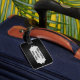 Schwarze weiche Textur mit Metallmarke Gepäckanhänger