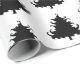 Schwarze Weihnachtsbäume Muster Qualität Packpapier. Weißes Papier auf einer Rolle - Sie wählen die Länge! Ein Muster schwarzer Kiefernbäume mit wirbelnden Ästen ist das Design. Die neutralen Farben harmonieren mit allem und sorgen für eine minimalistische Dekoration.