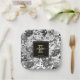 Schwarze, weiße, Vintage Blütenmonogramm Pappteller