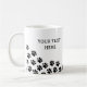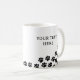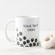 Cartoon Stil schwarzen Hund Pfoten drucken Keramik Fliesen. Schwarzweiß-Design. Bearbeiten Sie Text, um diese dekorativen Kaffeebeuge einzigartig zu machen. Geschenkidee für Hundefreunde und ihre Haustiere.