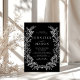 Stillose Eleganz mit unserer raffinierten böhmischen, rustikalen Schwarzen Hochzeitsinie, die in einem klassischen, minimalistischen Design mit aufwändigen Schwarz-Weiß-Wildblumen-Illustrationen besticht. Diese raffinierte Einladung eignet sich perfekt für eine Hochzeit im Sommer, Herbst oder Winter. Sie verleiht dem Hotel eine einzigartige Touch von botanischem Charme und boho-inspiriert Romantik.