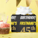 Dieses PackpapierAusrüstungsbeschreibungen eine Mitteilung mögen "45. GEBURTSTAG FIRSTNAMES! ", mit "45." Imitat/nachgemachten Gold ähnlichen Farbauftritt und mit dem Namen und "dem GEBURTSTAG" in einem Spaß habend, mutiger Schriftart. Der Name kann personalisiert sein, und der Hintergrund wird schwarz gefärbt. Packpapier so konnte möglicherweise benutzt werden, als, die Geburtstagsgeschenke einwickelnd, die jemand zur Feier ihres fünften Geburtstages vierzig gegeben wurden. [~Z0000203]