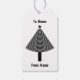 Schwarz Abstrakt Stripter Weihnachtsbaum personalisierte Weihnachtsgeschenktafeln. Abstrakte Kunst auf der einen Seite mit der notwendigen zu: und von: Text, und klassische schwarz-weiße Streifen auf der Rückseite. Ein anspruchsvolles, minimalistisches Design, das sowohl für Geschäftsreisende als auch für Privatpersonen geeignet ist.