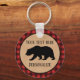 Schwarzer Bär auf einem roten und schwarzen Karier Schlüsselanhänger