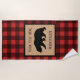 Schwarzer Bär auf einem roten und schwarzen Karier Strandtuch