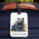 Reisen Sie stilvoll mit diesem individuellen Gepäckanhänger mit einem atemberaubenden schwarzen Bären in Aquarellfarbe. Es ist eine großartige Möglichkeit, Ihre Gepäckstücke leicht zu identifizieren und gleichzeitig eine Touch rustikalen Charmes zu Ihrem Reisegepäck hinzuzufügen. Das einzigartige Design hat ein sanftes, handgemaltes Aussehen mit künstlerischen Farbspritzen. Sie können den Tag mit Ihrem Namen, Ihrer Adresse oder einer speziellen Nachricht personalisieren, um ihn zu einem einzigartigen Accessoire zu machen. Zum Beispiel könnte ein Tag sagen: "John Doe - Wilderness Explorer", "Kabine im Wald" oder "Jackson Hole 20XX". Es ist ein großartiges Geschenk für alle, die Lieben zu reisen und die Natur zu schätzen.