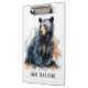 Fügen Sie Ihrer Arbeit oder Ihrem Zuhause-Büro eine Touch rustikalen Charmes hinzu, mit dieser speziellen Zwischenablage mit einem atemberaubenden schwarzen Bären in Aquarellfarbe. Es ist ideal, um Dokumente, Aufgabenlisten und Skizzen zu speichern, damit sich jede Aufgabe etwas mehr mit der Natur verbunden fühlt. Das einzigartige Design hat ein sanftes, handgemaltes Aussehen mit künstlerischen Farbspritzen. Sie können die Zwischenablage mit einem Namen, einer speziellen Nachricht oder einem Firmennamen personalisieren, um sie zu einem einzigartigen Accessoire zu machen. So könnte es beispielsweise mit "Die Müller", "Vaters Aufgabenliste" oder "Forstwirtschaftsabteilung" angepasst werden. Es ist ein großartiges Geschenk für jeden, der die Natur und die einzigartige Kunst schätzt.