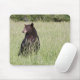 Amerikanischer schwarzer Bär stehend auf seinen Hinterbeinen, zum nach von Gefahr auf einem Gebiet von Timothy-Gras zu suchen.