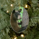 Diese hübsche Weihnachtsverzierung kennzeichnet eine wunderbare Fotografie eines Bären mit seinen vorderen Tatzen auf einem Baumstamm. Das Bild ist auf der Front und der Rückseite der Verzierung.