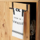 Modernes Küchenhandtuch personalisiert mit Ihrem Familiennamen, Monogramm-Initialen, Stadt und etablierten Datum in einem trendigen Logo-Wappen. Verwenden Sie die Designtools, um eine beliebige Hintergrundfarbe auszuwählen, die Schriftart und Farben zu bearbeiten oder eigene Fotos hochzuladen, um ein solches Design zu erstellen. Die perfekte Touch für Ihre moderne Bauernküche!