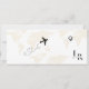 Ein elegantes mit Monogramm Boarding Pass Hochzeitsticket, ein Portrait des verlobten Ehepaares, ein Flugzeug mit Loop Trail und eine leicht anpassbare Save the Date Vorlage. Bitte denken Sie daran, den Text auf der Rückseite des Monogramms zu bearbeiten. Hochzeit