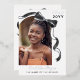 Hübsche Abschluss-Einladung und Ankündigung in einem personalisierten mit einem bogenförmigen Foto mit einem hübschen Band mit einem Bogen in Schwarz-Silber-Folie. Doppelseitige Abschluss-Einladung mit weißem Hintergrund und hübschen schwarzen Bögen. Girly 2 in 1 Abschluss Ankündigung und Einladung personalisiert mit Foto und dem Namen des Absolventen in einer schönen Silber-Folie Skript und ihr Foto mit einem Bogen in schwarz und silber Folie verziert.