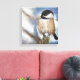 Niedlicher Winter Schwarz gekappte Chickadee Wrapped Canvas. Das Kunstwerk auf dieser Leinwand ist ein bezauberndes Winterkichergemälde. Ideal für Natur- und Vogelliebhaber! Dieses Kunstwerk ist auch auf anderen Produkten zum Mischen und Mischen verfügbar! Jenns Kunst & Handwerk Emporium Verbindung.