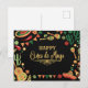 Mit dieser festlichen, schwarzen Postkarte Cinco de Mayo, die von farbenfrohen Fiesta-Ikonen gerahmt ist - sombreros, maracas, gitarren, cacti und helle bunting, verspricht ein aufregendes Urlaubserlebnis. Das kühne Kunstwerk spiegelt den Geist mexikanischer Feiern wider und eignet sich ideal für Party Einladungen, Dankeschön-Noten oder einfach nur für die Freude mit Freunden und Familie.