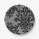 Schwarzer Damast auf grauem Muster Pappteller