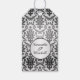 Hochzeitsgeschenk-Tag mit schwarzem Damastmuster auf silbergrauem Hintergrund