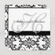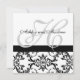 Stilvolle Einladungen für Hochzeiten, die Sie mit Monogram und Bride- und Groom-Namen auf einem Black and White Damask Design von Elke Clarke personalisieren können ©2011. Fügen Sie alle Ihre Hochzeitsinformationen auf der Rückseite der Karte mit Zazzle's einfach zu bedienenden Menüaufforderungen.
