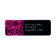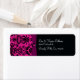 Feines schwarzes Damast-Set vor einem wunderschönen magentafarbenen Hintergrund mit einem magentafarbenen Samt wie ein Band und bestickt wie Juwelendekoration. Individuelle Rücksendeetiketten sind ideal für den Versand der passenden Karten oder Schreibwaren.