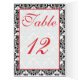 Schwarzer Damast mit Mohnrot-Tischnummer-Karte