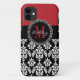Schwarzer Damast-roter Anfangsname Case-Mate iPhone Hülle