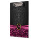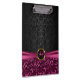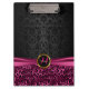 Schwarzer Damast und hellrosa Leopardendesign Klemmbrett