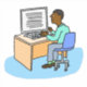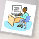 Aufkleber mit einem schwarzen Mann, der in einem Büro an seinem Computer arbeitet.