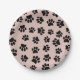 Schwarze Hundepfoten drucken auf goldenem Hintergrund der Rose. Cartoon-Muster für Hundefreunde. Teller für kundenspezifisches Papier. Hunde Party Dekor Idee.