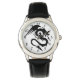 Uhr, Klassische Damenuhr mit schwarzen Lederarmband