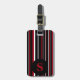 Gepäckanhänger mit schwarzen, dunkelroten und weißen vertikalen Streifen mit dem Monogramm. Personalisieren Sie Ihre Monogramm-Initial-und Informationen mithilfe der einfachen Vorlagen. Schriftart, Schriftart und Schriftart sind individuell einstellbar.