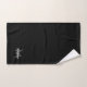 Monogramm Ihr Name und ein erster Text in grauem und weißem Schriftzeichen auf einfachem schwarzem Set für Badehandtuch.