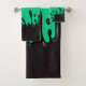 Schwarzer Farbspritzer auf Smaragdgrün Badhandtuch Set