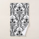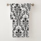 Schwarzer Floral-Damast in Weiß Badhandtuch Set