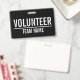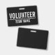 Black Volunteer Abzeichen mit dem Titel "Volunteer" und Teamname in weißen fett-sans serif Schriftart auf schwarzem Hintergrund.